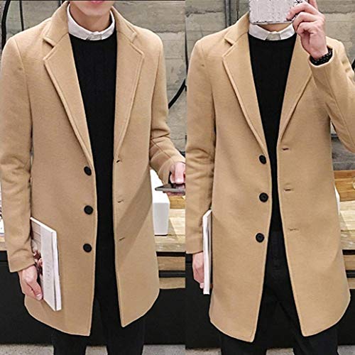 Titel: Männer Nner Lange Wolljacke Formalen Langarm Einfarbig Taste Modernas Lässig Trenchcoat Jeansmantel Mantel (Color : Khaki, Size : XL)ASIN: B07HRD5T95